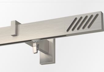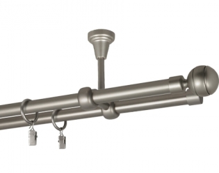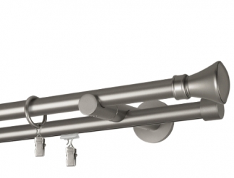 Karnisz podwójny przesuwny z wspornikiem w kolorze satyny i końcówkami Rapid