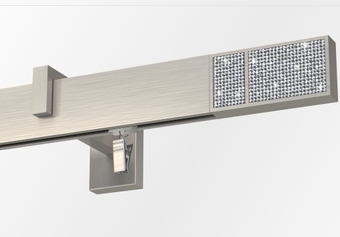 Karnisze apartamentowe o krótkim wsporniku w kolorze aluminium szczotkowane i końcówką Boss Cristal