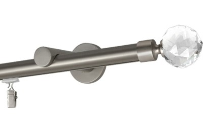 - Końcówki do karniszy Cristal kula (2 szt.) wykonane z metalu pokrytego powłoką ochronną, dzięki której są one bardziej wytrzymała na ścieranie i uszkodzenia. Końcówka Cristal kula przedłuża karnisz pojedynczy o 5,00cm (wartość wliczona w podaną wyżej długość całkowitą).