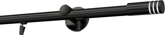 Końcówka karnisza Malibu w kolorze czarnym z trzema białymi pasami idealnie wpisująca się w ekskluzywny wystrój wnętrza, upiększy wystrój wnętrza twojego pomieszczenia.Zakończenie nadaje się zarówno do karniszy czarnych jak i białych. Element karnisza przedłuża jego długość o 6,5cm. Zakończenie wystarczy wcisnąć na drążek w miejscu, w którym kończy on swój bieg oraz zabezpieczyć drobnym metalowym wkrętem imbusowym. Wkręt umieszczamy od strony okna dzięki czemu jest on praktycznie niewidoczny. Kluczyk imbusowy jest zawsze dołączny do kompletu