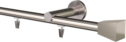Karnisz pojedynczy przesuwny z wspornikiem w kolorze stal nierdzewna i końcówkami Velia o długości całkowitej 126.4 cm w cenie 99.74zł. Zestaw zawiera profile koloru stal nierdzewna o łącznej długości 120.00, wsporniki oraz 12x ślizg z żabką .