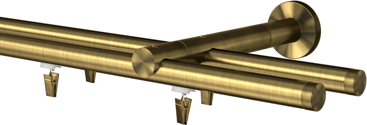 Karnisz podwójny przesuwny z wspornikiem w kolorze mosiądzu antycznego z przedłużką i końcówkami Tobi o długości całkowitej 121.2 cm w cenie 218.56zł. Zestaw zawiera profile o łącznej długości 120.00 na każdy z torów, wsporniki oraz 12x ślizg z żabką na pierwszy profil i 12x ślizg z żabką na drugi.