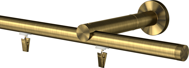 Karnisz pojedynczy przesuwny z wspornikiem w kolorze mosiądz antyczny z przedłużką i końcówkami Tobi o długości całkowitej 121.2 cm w cenie 133.54zł. Zestaw zawiera profile koloru mosiądz antyczny o łącznej długości 120.00, wsporniki oraz 12x ślizg z żabką .