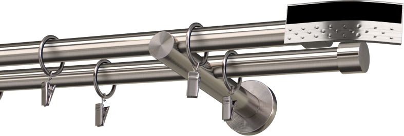 Karnisze metalowe podwójne stosowane są gdy pragniemy powiesić nad oknem zasłony i firany. Wysokiej jakości materiał i solidne wykonanie, zapewnia dużą wytrzymałość oraz wysoce estetyczny wygląd, dzięki czemu karnisz stanowi nie tylko funkcjonalny, ale również elegancki element wykończenia wnętrz. Nasz sklep pozwala na pełną konfigurację karnisza, daje możliwość dobrania odpowiedniej długości rur, rodzaju i koloru końcówki wspornika oraz kółek z żabkami czy agrafkami. Dzięki takiemu rozwiązaniu możemy zaprojektować konstrukcję dokładnie dopasowaną do naszego gustu a przede wszystkim potrzeb.